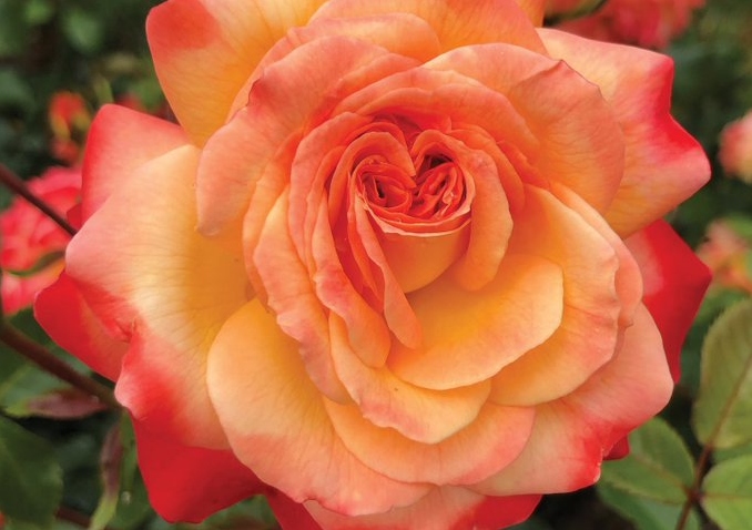 This years winner is a beautiful new variety called Meteor. Bred by Kordes, Meteor is a floribunda rose that produces lightly scented blooms of golden-yellow, flushed red. The flowers are repeat-blooming and have a healthy, disease-resistant foliage. Meteor is a compact grower, reaching about 70 cm high, making it a good choice for borders or pots. Meteor benefits from being planted in full sun to enhance the colour change it goes through so be sure to pick a sunny spot.