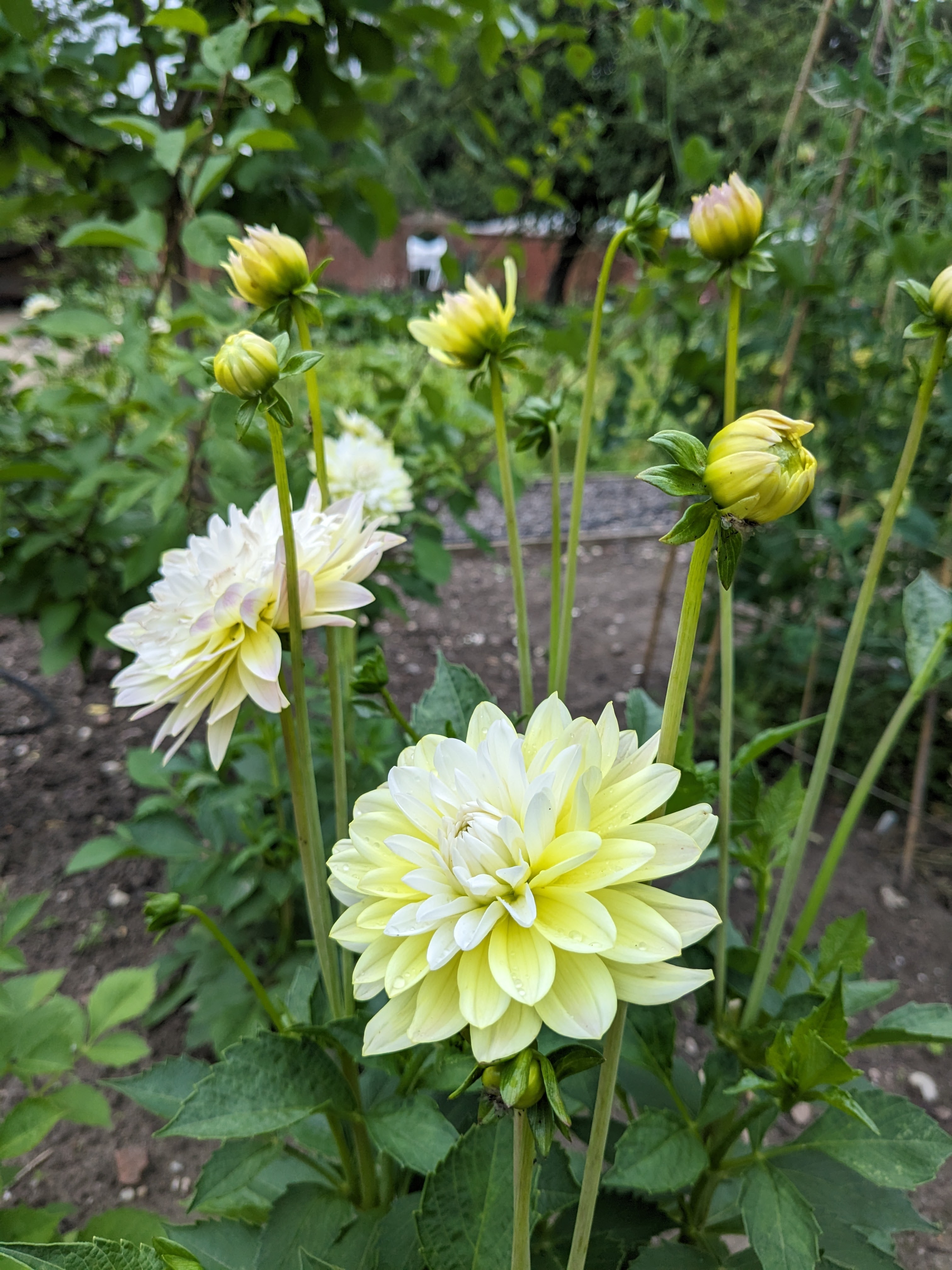 on the plus side it produces good long stems for cut flowers, holds its head up, doesn’t require staking and when it’s behaving produces beautiful lemon yellow blooms tinted white that vary from flower to flower