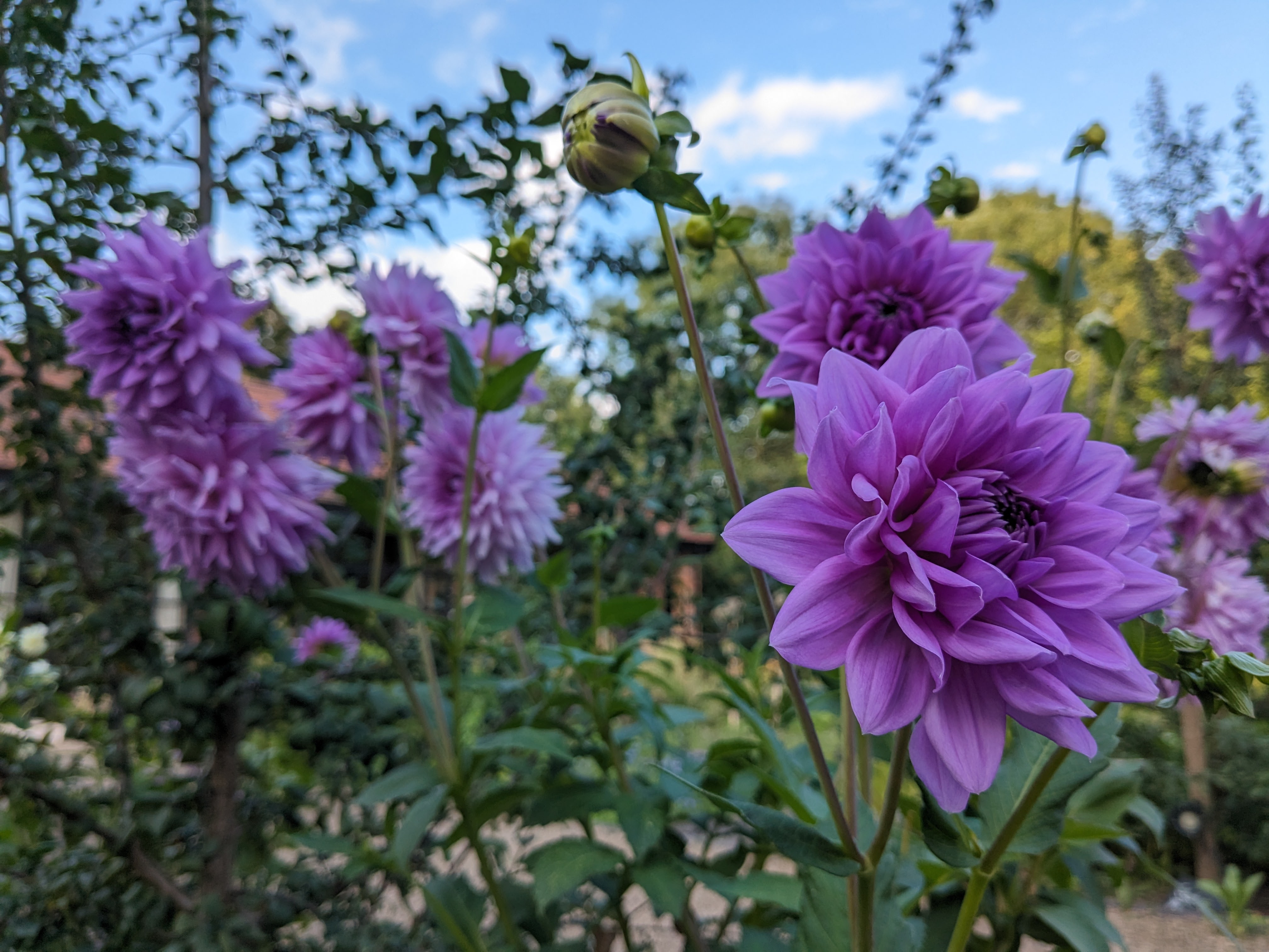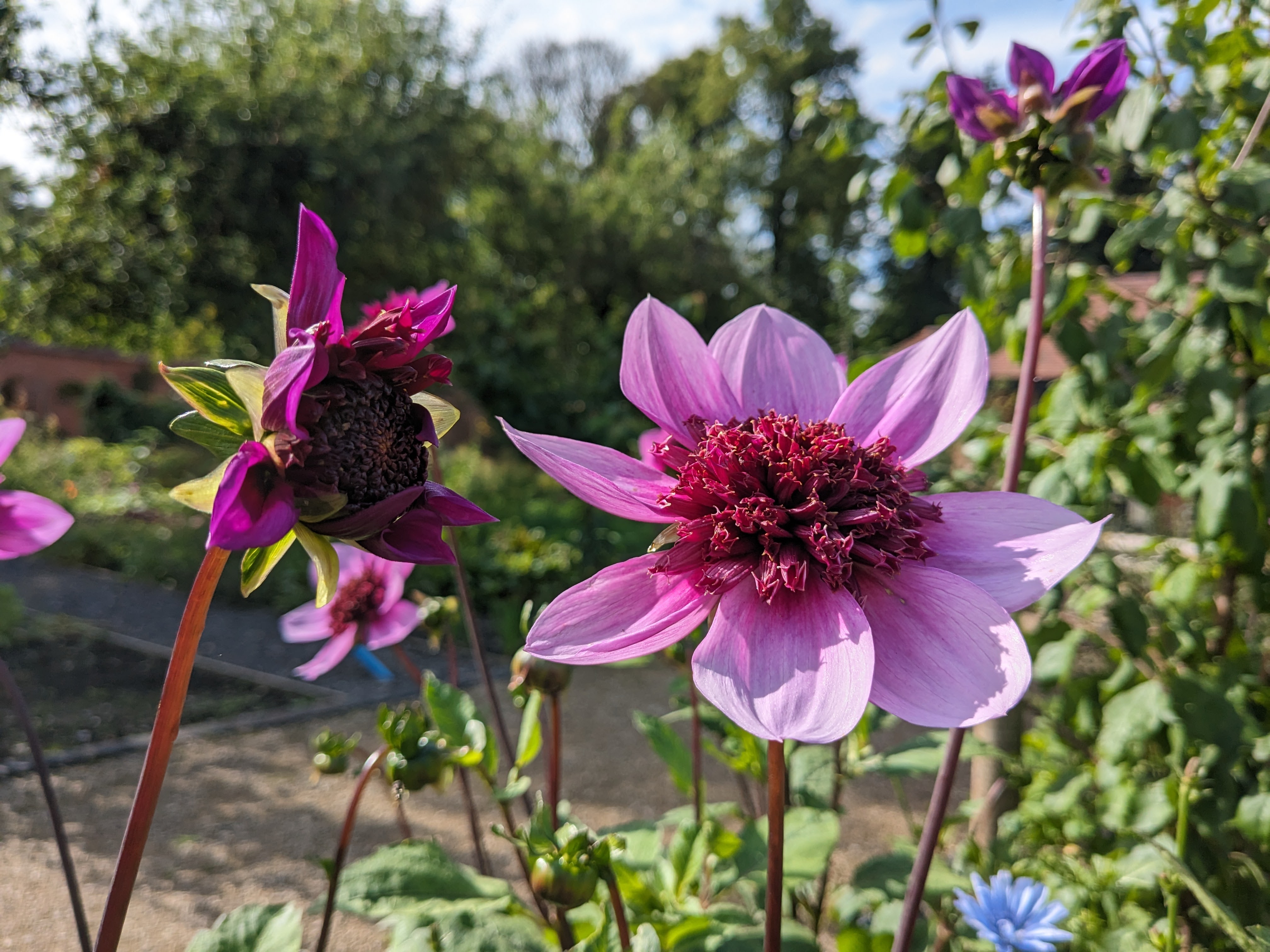 I grow labyrinth and first of all had it in a pot where it wasn’t at all happy. It is much better in the border where it grows to a huge size. The flowers are beautiful but the stems are quite short. It’s quite a strong plant but I did need to stake it. I have it in a raised border and that might be part of the problem. I have grown Hadrian’s sunset which I got from Halls of Heddon and it is beautiful. Would thoroughly recommend them for plants or tubers as have never had a duff one from them. Dahlia Pooh is also excellent and has flowered continuously on a nice strong plant.