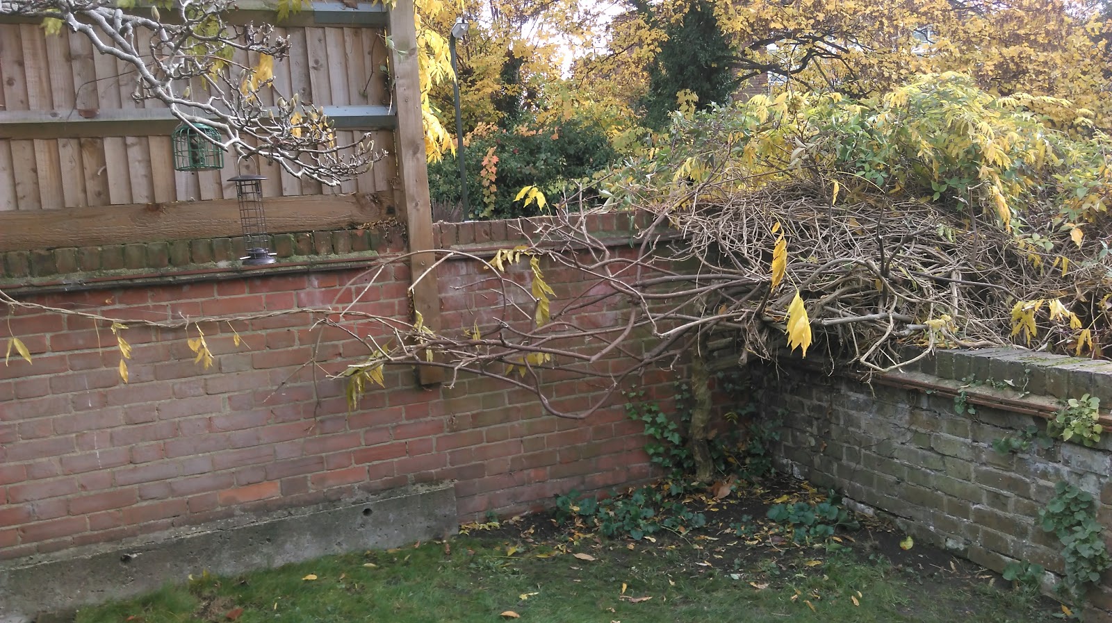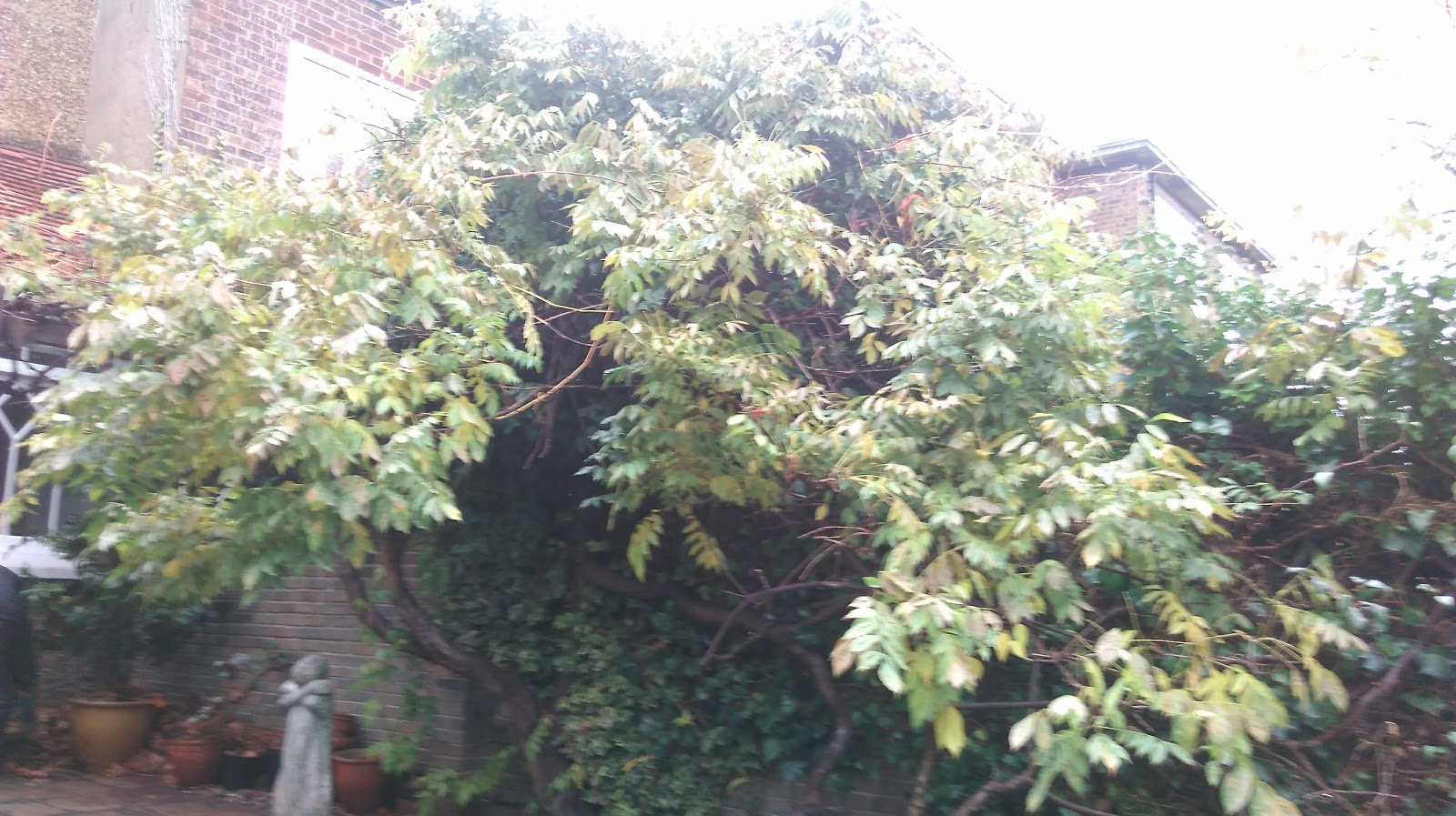 | Badly pruned in previous years this Wisteria needed a serious haircut to bring it back to a safe manageable level. |