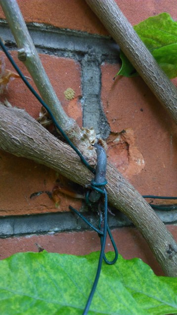 I then put in a wire to run along the brickwork at the base of the fence, in future years I will add further wires to the fence but that can wait until a good framework is re-established