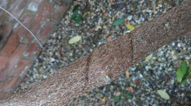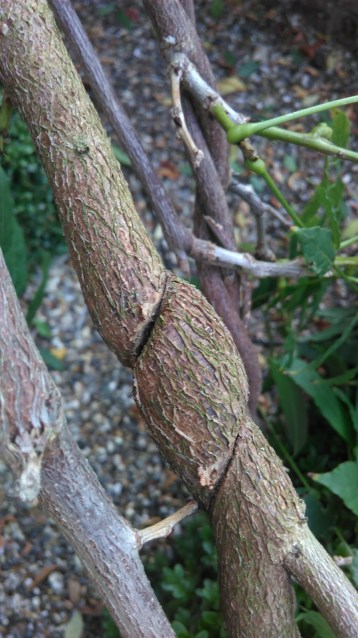 In this case I have pruned back to the main stem of 6 years ago in order to trigger it to resprout further back and give me new juvenile material to work with next year.