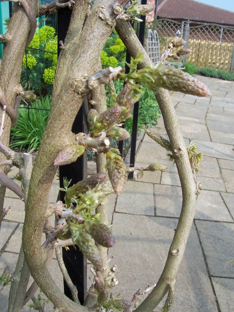 | A young Wisteria pruned correctly will be smothered in flowers from base to head. This at Ryton Organic Gardens |